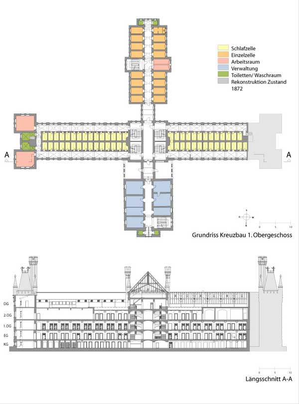 Kreuzbau - Längsschnitt - 1.OG Grundriss