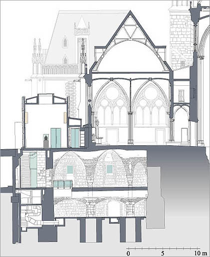 Nord-Süd-Schnitt Die bauliche Umgestaltung der mittelalterlichen Gewölbekeller der Sakristei zur neuen