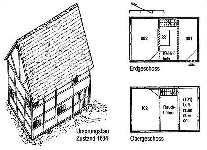 Detailaufnahmen. Hauskundlich herausgearbeitet werden konnte der 2-zellige Ursprungsbau von 1687 und die nachfolgende bauliche